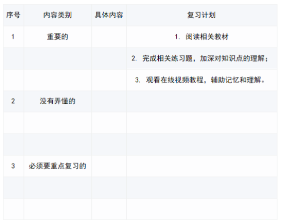 第一、梳理下自己的复习进度,有哪些问题需要在这个假期集中处理掉,整理下以前复习计划中落下的内容,然后做一个假期复习计划表。