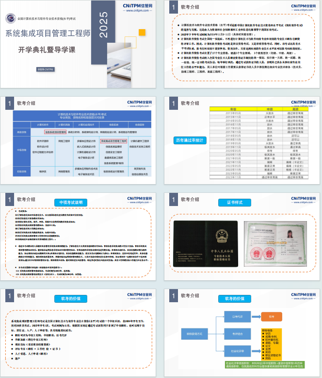 本次 "导学课" 我们将重点帮助各位考生了解系统集成项目管理工程师从考试介绍 → 拿证上岸全流程,让大家能完完全全了解:系统集成项目管理工程师究竟是一个什么样的考试?证书有哪些价值?应该如何报名以及拿证!!!