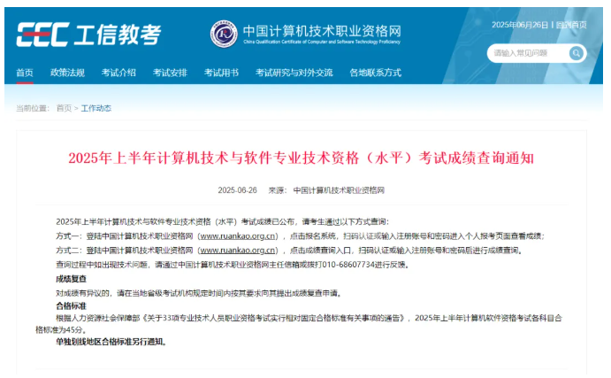2025年上半年计算机技术与软件专业技术资格(水平)考试成绩查询通知