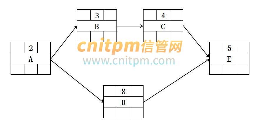 在下面的项目网络图中(时间单位为天),活动B的自由时差和总时差分别为(1),如果活动A的实际开始时间是5月1日早8时,在不延误项目工期的情况下,活动B最晚应在(2)前结束