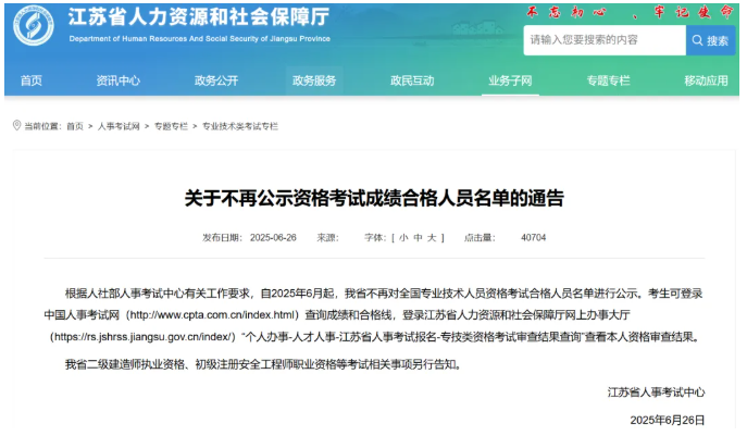 关于不再公示我省专业技术人员职业资格考试成绩合格人员名单的通告