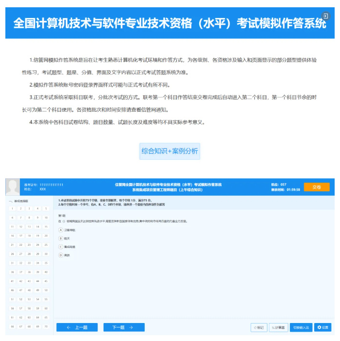 模拟系统中考试题型、题量、分值、界面及文字内容以正式考试答题系统为准,大家不必过多纠结模拟系统中相关内容