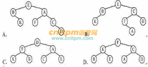 若某二叉树的后序遍历序列为KBFDCAE,中序遍历序列为BKEFACD,则该二叉树为()。