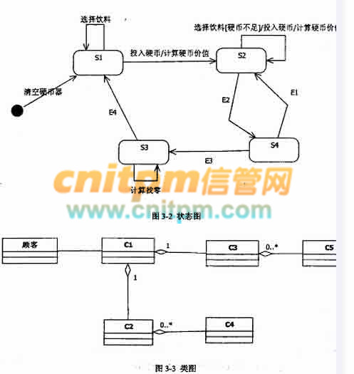 根据用例“购买饮料”得到自动售货机的4个状态:“空闲”状态、“准备服务”状态、“可购买”状态以及“饮料出售”状态,对应的状态图如图3-2所示。