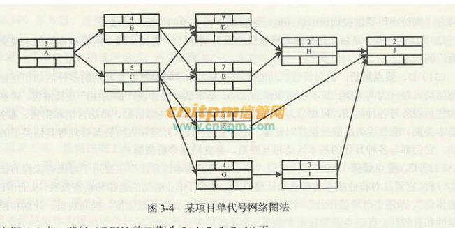 在图3-4中,路径ABEHJ的工期为3+4+7+2+2=18天;
