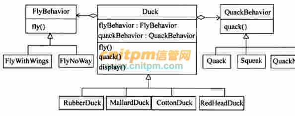 为支持将来能够模拟更多种类鸭子的特征,采用策略设计模式(Strategy)设计的类图如图10-11所示: