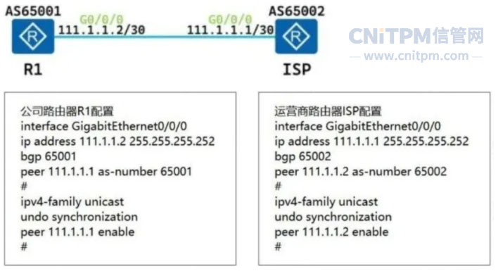 某园区与ISP运营商建立eBGP邻居,配置完成后,BGP邻居始终无法进入“Established”状态,网络拓扑和路由器配置如下所示: