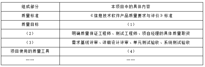 结合案例,并参考示例,补充完整如下的本项目质量管理计划表。