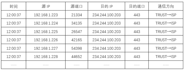 某天,该企业接到电信主管部门通报:网络存在异常访问234.244.100.203的流量。网络工程师通过防火墙日志进行分析,获得如下信息。