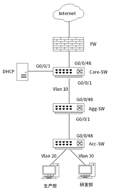 agg-sw和core-sw的网络类型不一样,将core-sw的网络类型改为广播有人私接路由器,开启dhcp snooping功能(1)虚拟局域网(2)端口隔离(3)vlan-if3