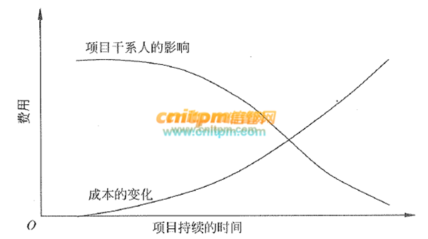 在项目的初始阶段,项目干系人影响项目的最终产品特征和项目最终费用的能力最高,随着项目的继续开展则逐渐变低。如下图所示。故选项D 说法不正确。