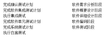 试题五(10分) 此项目的软件开发模型采用瀑布模型。为了做好质量控制,监理工程师应掌握测试工作进程。在软件生存周期各阶段,测试工作有所不同。请将下面左侧的软件测试活动与右侧对应的软件生存周期阶段用线连接。