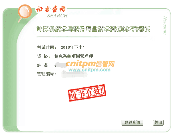 2016年下半年计算机技术与软件考试信息系统项目管理师、系统集成项目管理工程师、信息安全工程师等证书查询已开通,各位通过的学员可以通过中国计算机技术职业资格考试网证书查询服务进行证书编号的查询。