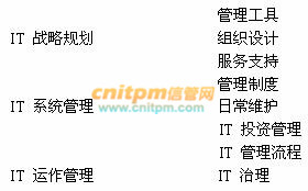 企业的 IT 管理工作,既有战略层面的管理工作,也有战术层面(IT 系统管理)和运作层面的管理工作。下面左边是IT 管理工作的三个层级,右边是具体的企业IT 管理工作,请用箭线表示它们之间的归属关系。
