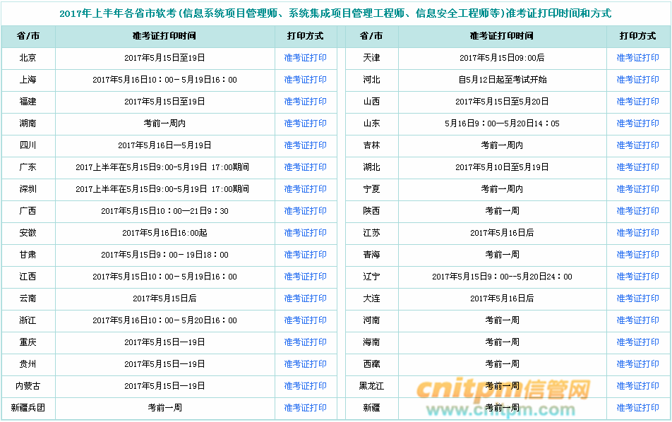 什么时候打印2017年上半年软考准考证?