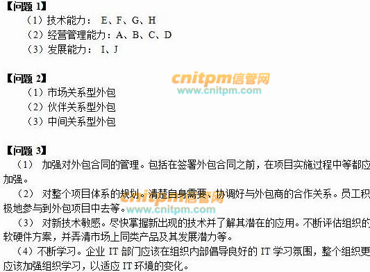 近年来,中国 IT 外包产业发展迅速。据有关资料介绍,中国将成为继印度之后新的外包产业中心。企业应将外包商看作一种长期资源,并处理好与外包商之间的关系,使其价值最大化,这将对企业具有持续的价值。