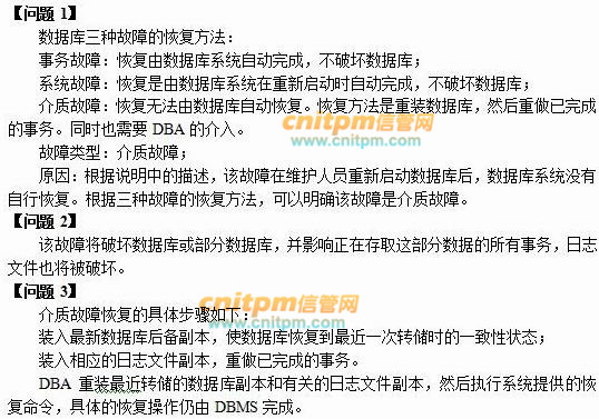 请解释三种数据库故障的恢复方法,回答该企业的数据库故障属于何种类型的故障?为什么?