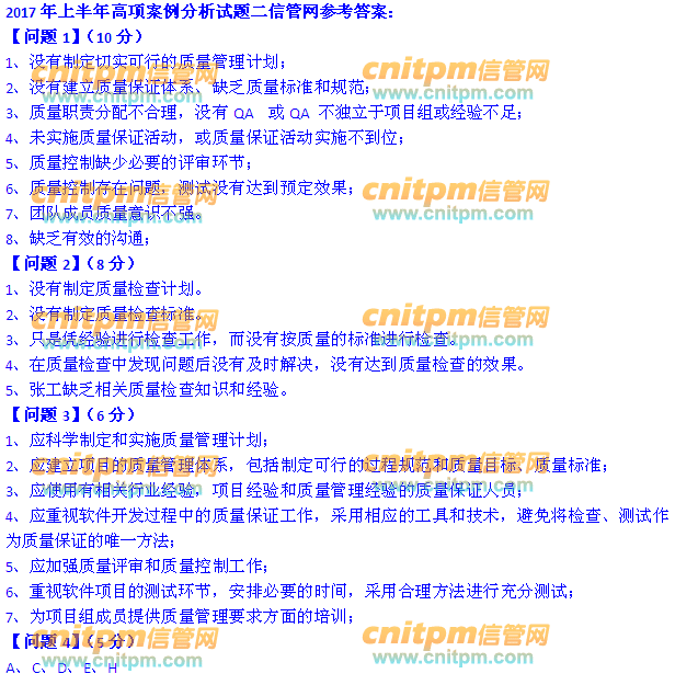 以下2017年上半年信息系统项目管理师下午案例分析参考答案供各位考友查看。
