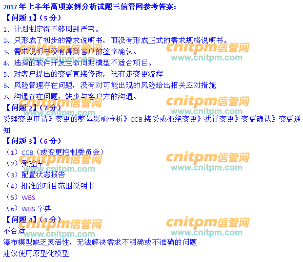 2017年上半年信息系统项目管理师下午案例分析考友参考答案(考友版)