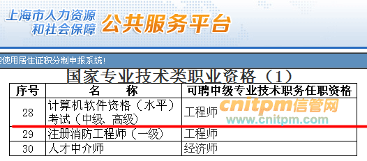 根据上海市《国家专业技术类职业资格目录》说明,计算机软件资格(水平)考试(中级、高级)位列其中。