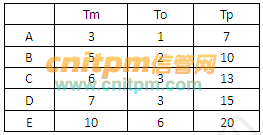 某项目由ABCDE五个活动构成,完成各活动工作所需要的最可能时间Tm、最乐观时间To、最悲观时间Tp见下表: