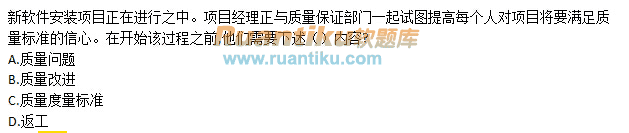 未指定试题:新软件安装项目正在进行之中。项目经理正与质量保证部门一起试图提高每个人对项目将要满足质量
