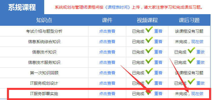 各位JRS直播系统规划与管理师培训学员,系统规划与管理师课程IT服务部署实施视频和课件以及课后习题都已上传,各位培训学员可以登录视频客户端和网站会员后台查看。