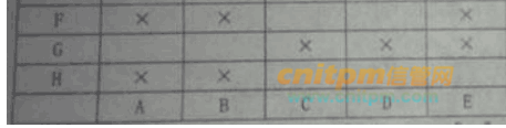 有八种物品A、B、C、D、E、F、G、H要装箱运输,虽然量不大,仅装1箱也装不满,但出于安全考虑,有些物品不能同装一箱。在下表中,符号“×”表示相应的两种物品不能同装一箱。运输这八种物品至少需要装()箱