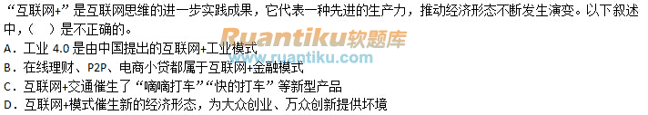 未指定试题:“互联网+”是互联网思维的进一步实践成果,它代表一种先进的生产力,推动经济形态不断发生演