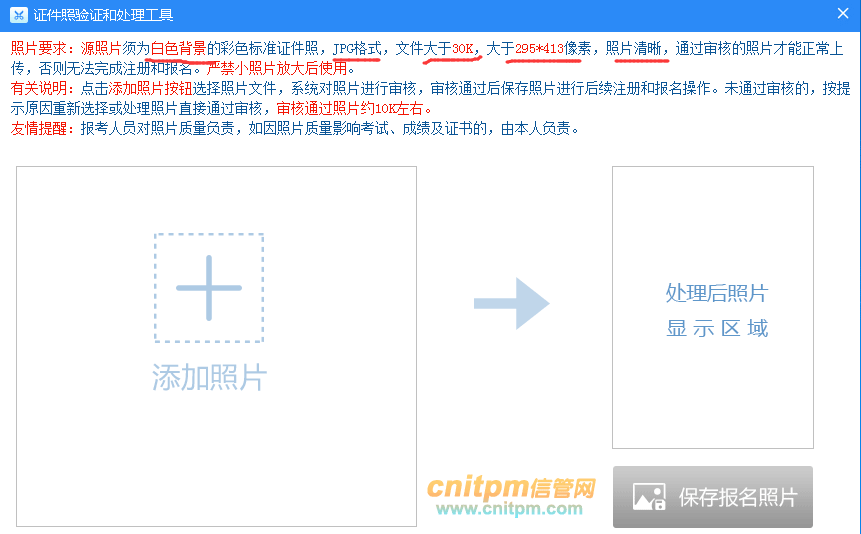 点击下载:软考报名照片验证和处理工具软件