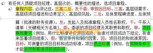 我只记得项目章程是三高二总发干委审假因目标
