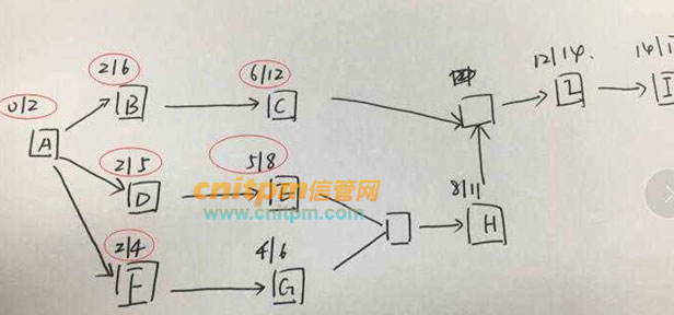 B是4天,它的紧前活动是A,所以开始时间是2,结束时间是6