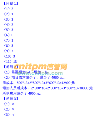 假设该项目团队有SA人员1人,SD人员2人,SC人员3人,请将下面(1)~(11)处的答案填写在答案纸的对应栏内。