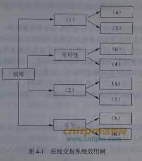 在架构评估过程中,质量属性效用树(utility tree)是对系统质量属性进行识别和优先级排序的重要工具。请给出合适的质量属性,填入下图中(1)、(2)空白处;并选择题干描述的(a)~(m),填入(3)~(6)空白处,完成该系统的效用树。