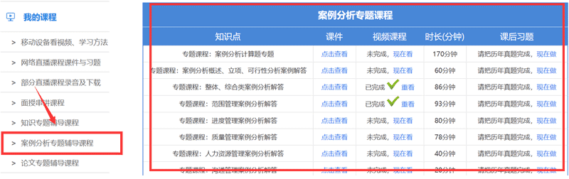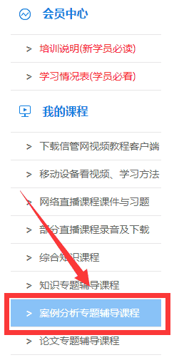 1、点击会员中心左侧导航栏“案例分析专题辅导课程”