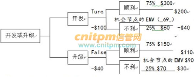 决策树分析法通常用决策树图表进行分析,根据下表的决策树分析法计算,图中机会节点的预期收益EMV分别是90和()。(单位:万元)