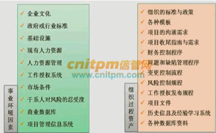 组织过程资产:教训,经验,指导方针,文档,企业计划。