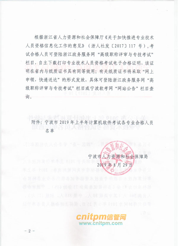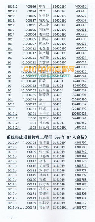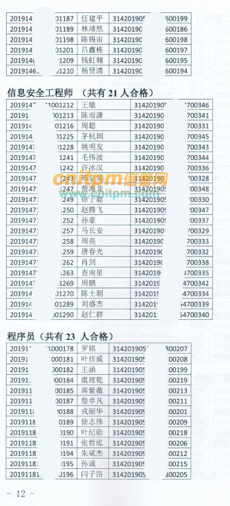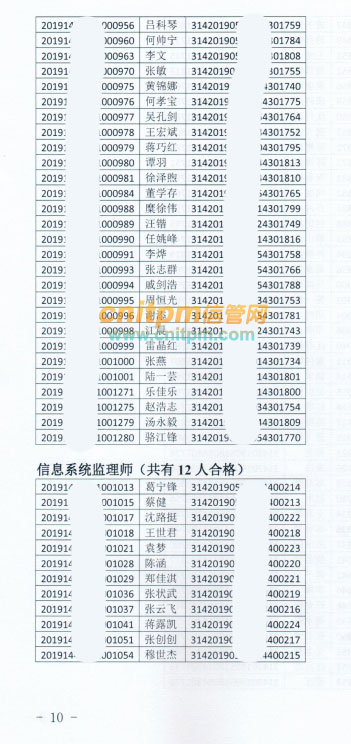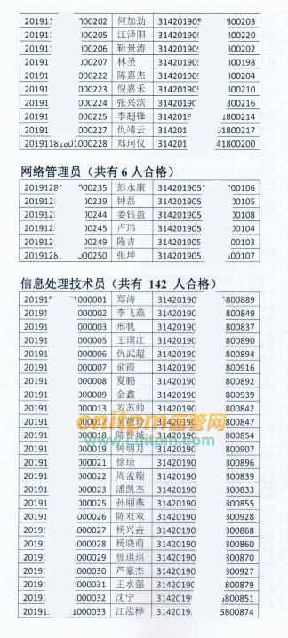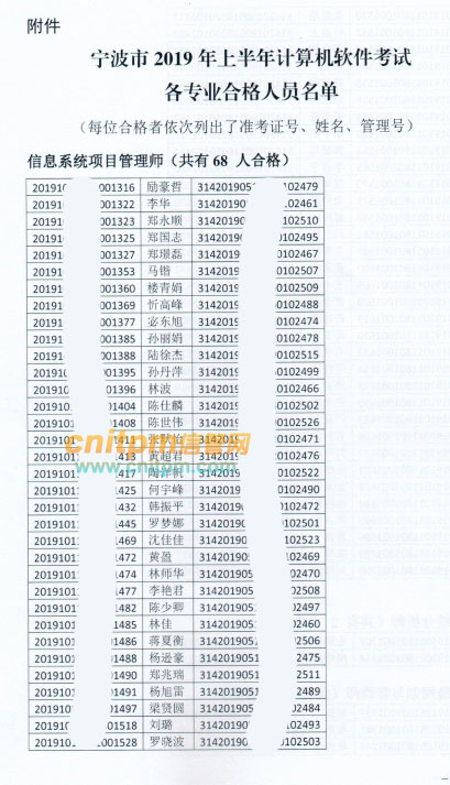 2019年上半年浙江宁波软考合格人员名单已公布,根据数据统计,宁波市2019年上半年软考合格人员共566人,其中高级80人,中级315人,初级171人,其中高级信息系统项目管理师合格人员为68人,系统规划与管理师合格人员为10人,中级系统集成项目管理工程师合格人员为87人,信息安全工程师合格人员为21人,以下为2019上半年浙江宁波软考所有科目合格人员名单: