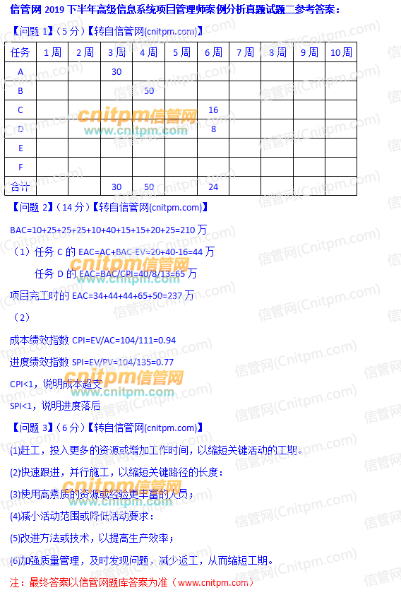 点击下载:2019年下半年信息系统项目管理师下午案例分析真题与答案完整版