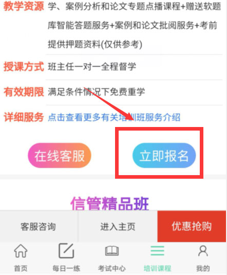 3、进入培训课程页面后选择您要报名的班级,点击“立即报名”