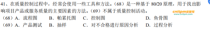 在质量控制过程中,经常会使用一些工具和方法。(68)是一种基于80/20原理,用于找出影响项目产品或服务质