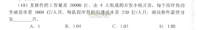 某软件的工作量是20000行,由4人组成的开发小组开发,每个程序员的生产效率是5000行/人月,每对程序员的沟