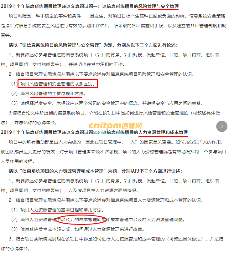 可以看出,虽然是双拼,但是有一个是主论点,有一个是辅论点。第一个题目,主论点是风险管理,然后在风险管理中阐述安全的问题;第二个题目,主论点是人力资源管理,然后在人力资源中阐述成本问题,以及相互影响