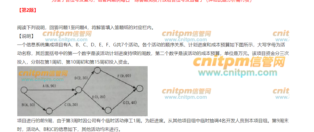 @昔日数神 今天的每日一练里面的案例分析题目,指工期和预算