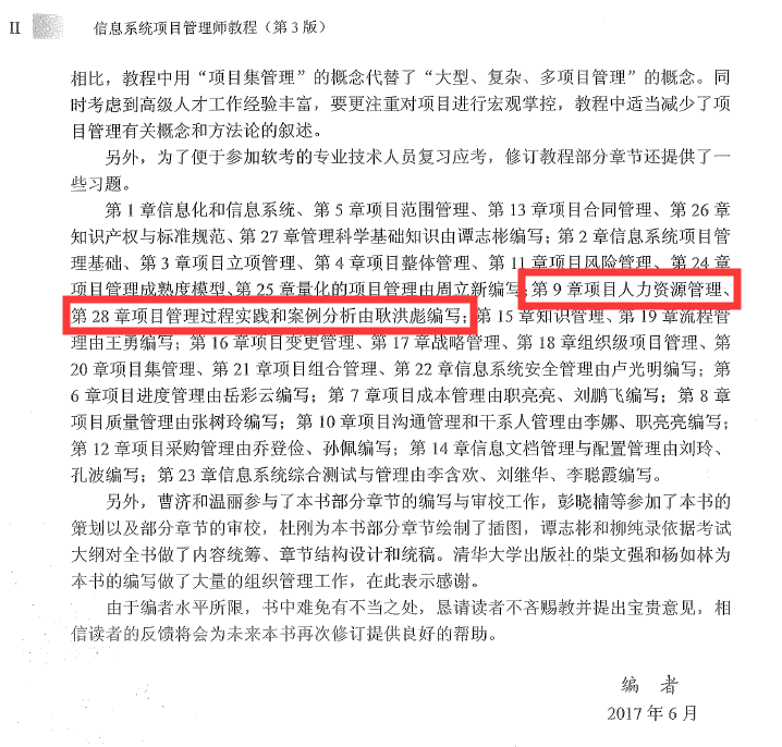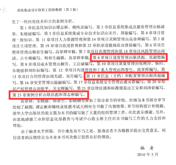 耿洪彪老师是软考办指定考试用书《信息系统项目管理师教程(第3版)》和《系统集成项目管理工程师教程(第2版)》作者,编写了教程多个章节内容,比如人力资源章节和案例分析章节,其中高级这几次下午案例或论文科目经常考的人力资源管理章节内容正是耿洪彪老师所编写,同时耿老师还编写有《软考历年试题分类精解》系列丛书。