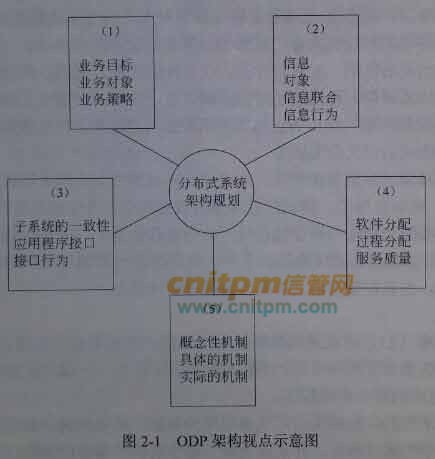 ODP从5个标准的视点组织分析系统的架构,这些视点描述了同一系统的不同重要方面,请根据图2-1中不同视点所关注的核心内容,将备选的架构视点填入图中的(1)~(5)。