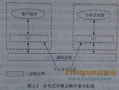 由于系统后台模块的分布式特性,后台分布式对象之间的互操作机制是需要考虑的核心问题之一。图2-2所示是当前分布式基础设施中支持分布式对象互操作的基本机制,请将相应部件名称填入图中(1)~(2);基于图2—2给出的结构,用300字以内文字说明完成一次分布式对象调用的详细步骤。
