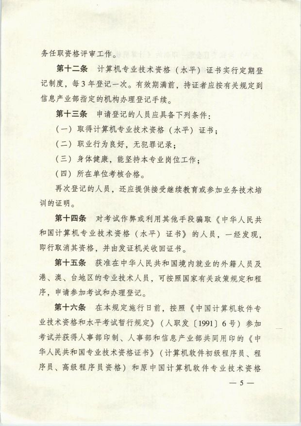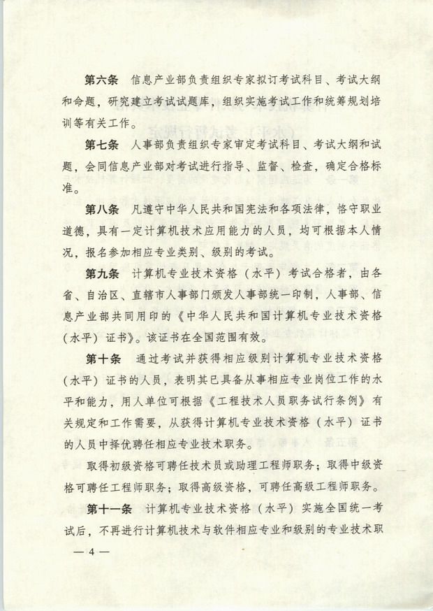 自2004年1月1日起,人事部、原国务院电子信息系统推广应用办公室发布的《关于印发〈中国计算机软件专业技术资格和水平考试暂行规定〉的通知》(人职发[1991]6号)和人事部《关于非在职人员计算机软件专业技术资格证书发放问题的通知》(人职发[1994]9号)即行废止。