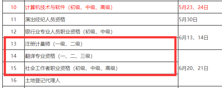 根据JRS直播从中国人事考试网获得的相关信息,又有3个职业资格考试推迟举行,具体时间另行通知,包括原定6月13、14日举行的2020年度注册计量师(一级、二级),原定6月20、21日举行的翻译专业资格(一级、二级、三级)和社会工作者职业资格(初级、中级、高级)考试。