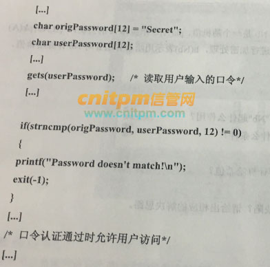 某一本地口令验证函数(c语言环境,x86_32指令集)包含如下关键代码:某用户的口令保存在字符数组origpassword中,用户输入的口令保存在字符数组userpassword中,如果两个数组中的内容相同则允许进入系统。